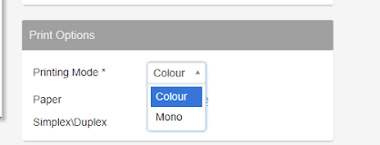 - Select your paper, colour, configuration. You can lock down these options for the entire business, or whether you would like each employee to pick.